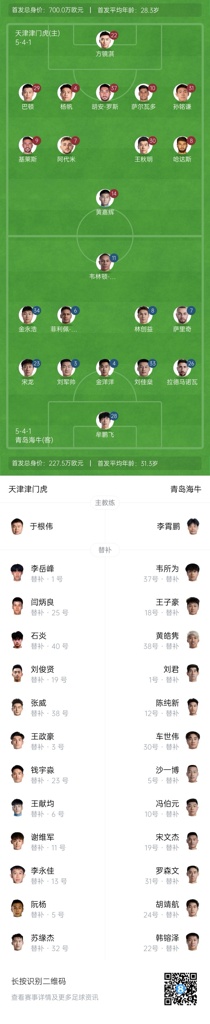 03月29日讯 3月29日15:30,中超第三轮天津津门虎对阵青岛海牛。赛前双方首发公布。