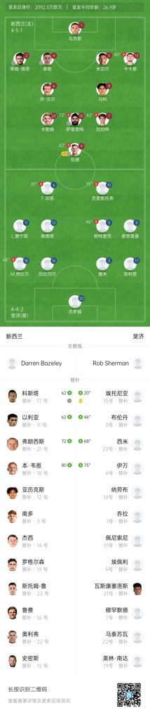 值得一提的是,新西兰目前FIFA排名第89位,仅比中国队高出一位(中国FIFA第90位)。这支球队的核心人物无疑是身价高达1000万欧元的伍德,他的表现将直接决定新西兰能否第三次冲击世界杯。
